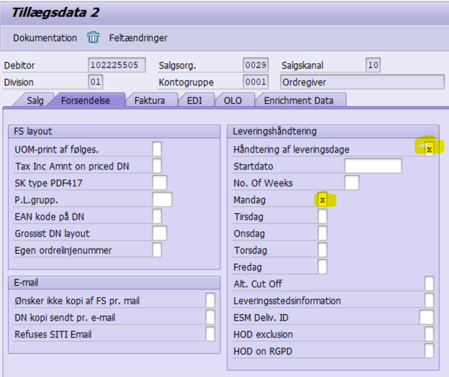 Skal kunden sættes op til fast levering om mandagen skal der først krydses af i "Håndtering af leveringsdage"