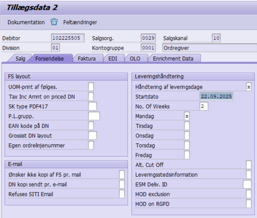 Opsætning af faste leveringsdage i SAP