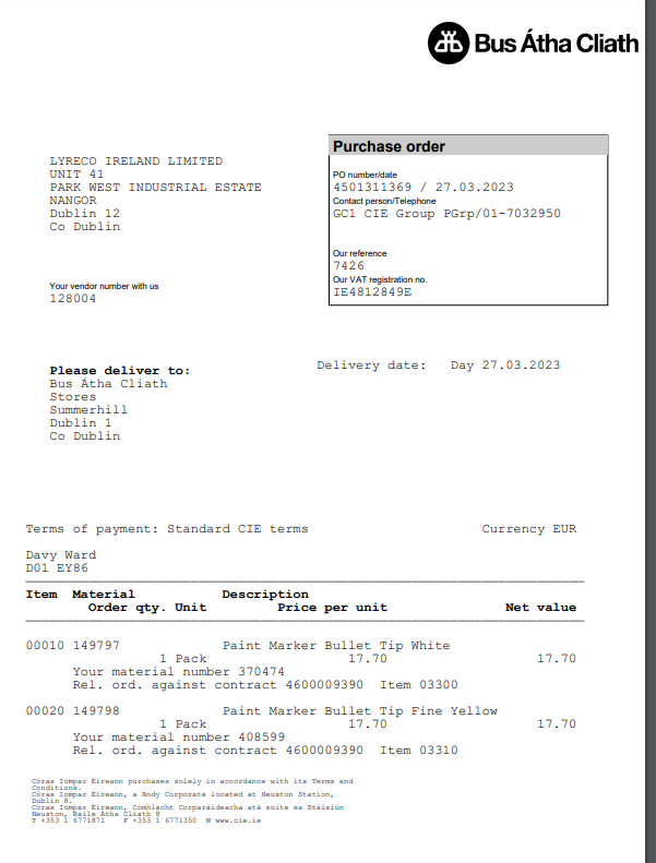 - We can process for Bus Atha Claith not Bus Eireann (in Name 3). Double check account as they use the same depots and have the same delivery sites.